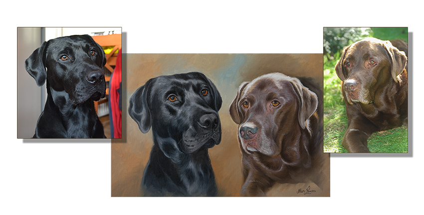 Hieronder twee labradors, olieverf geschilderd op een 40 x 60cm doek. Aan de hand van de aangeleverde foto's.